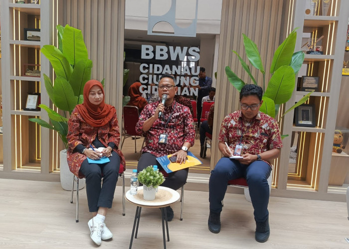 Kepala BBWSC3 Dedi Yudha Lesmana pimpin jalannya konferensi pers, di kantor BBWSC3 di Kota Serang, Jumat (7/11). (AGUNG GUMELAR/TANGERANG EKSPRES)--