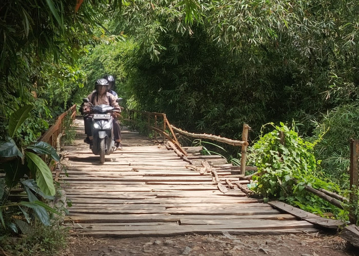 Apalagi sudah turun hujan, jembatan ini akan sangat licin untuk dilalui. Warga yang melintasinya tentu harus fokus. Karena kalau salah sedikit saja bisa terjatuh akibat kayu yang menjadi licin usai diguyur hujan.
