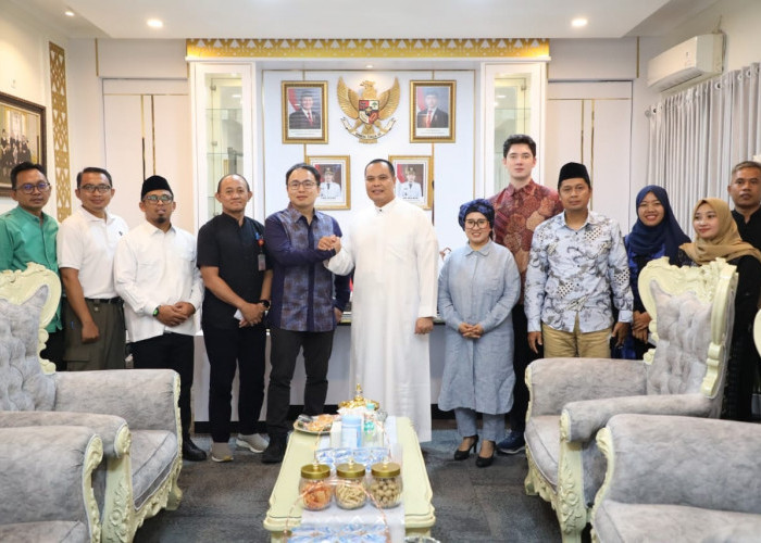 Wali Kota Serang Budi Rustandi bersama perwakilan PBNU dan tim ahli green economy dari Taiwan usai audiensi pembahasan rencana pembangunan Kawasan Ekonomi Sirkular di Kota Serang, Jumat (21/11).--