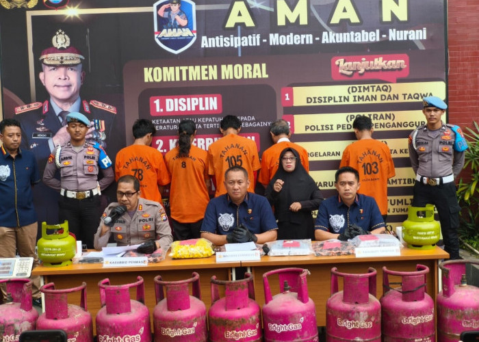 TANGERANGEKSPRES.ID, SERANG — Direktorat Reserse Kriminal Khusus (Ditreskrimsus) Polda Banten membongkar sindikat penyalahgunaan gas Elpiji (LPG) subsidi 3 kilogram yang disuntik atau dipindahkan ke tabung nonsubsidi 5,5 kg dan 12 kg. Para pelaku berhasil meraup keuntungan fantastis hingga Rp590 juta selama operasi sejak Juli 2025.