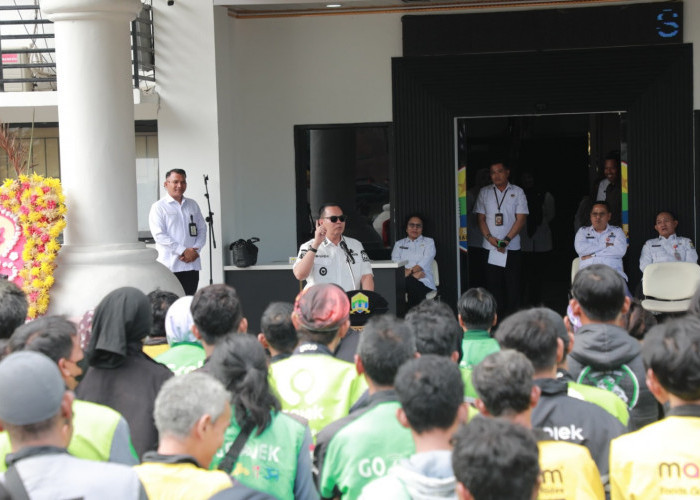 Wali Kota Serang, Budi Rustandi saat memberikan arahan kepada 153 ojol Kota Serang, di halaman Setda Puspemkot Serang, Rabu (17/12).--