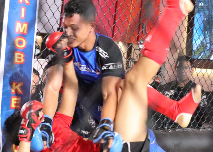 SENGIT: Petarungan Bela Diri Amatir Banten (atas) duel pada Kejurnas IBCA MMA Piala Dankorps Brimob 2025.(Ist Pengprov IBCA MMA Banten)--