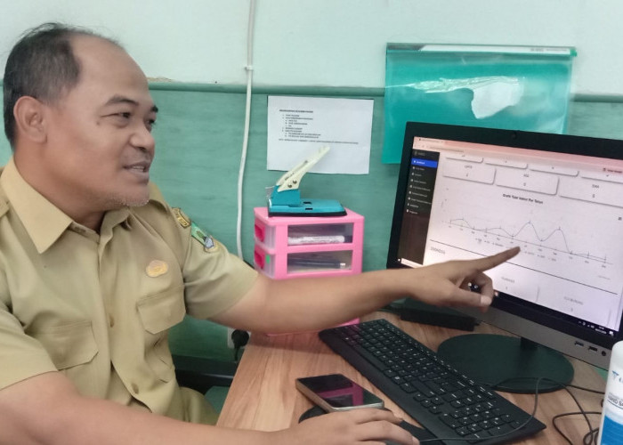 Petugas Puskesmas Batusari, Adiyaksa tengah menunjukan data penanganan kasus DBD, Selasa 6 Januari 2026.-Abdul Aziz Muslim/Tangerang Ekspres-